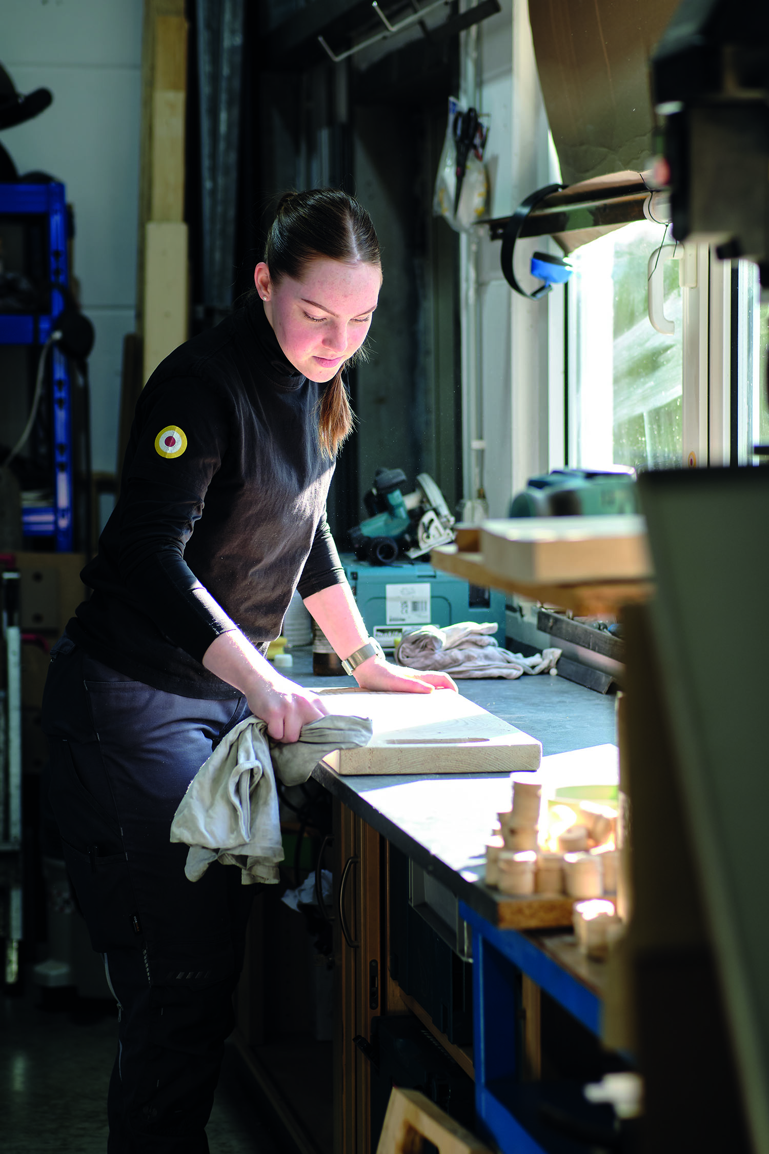 Ieva Biseniece macht bei der Kempener Firma Ideenwerk NRW seit August 2024 ihre Ausbildung als Schilder- und Lichtreklameherstellerin und ist damit sehr zufrieden. Die Mischung aus Kreativität und Handwerk gefällt ihr besonders gut. Mal ist Kreativität und Feinarbeit bei der Herstellung der Schilder gefragt, bei der Montage vor Ort wird es dann aber auch handfest.