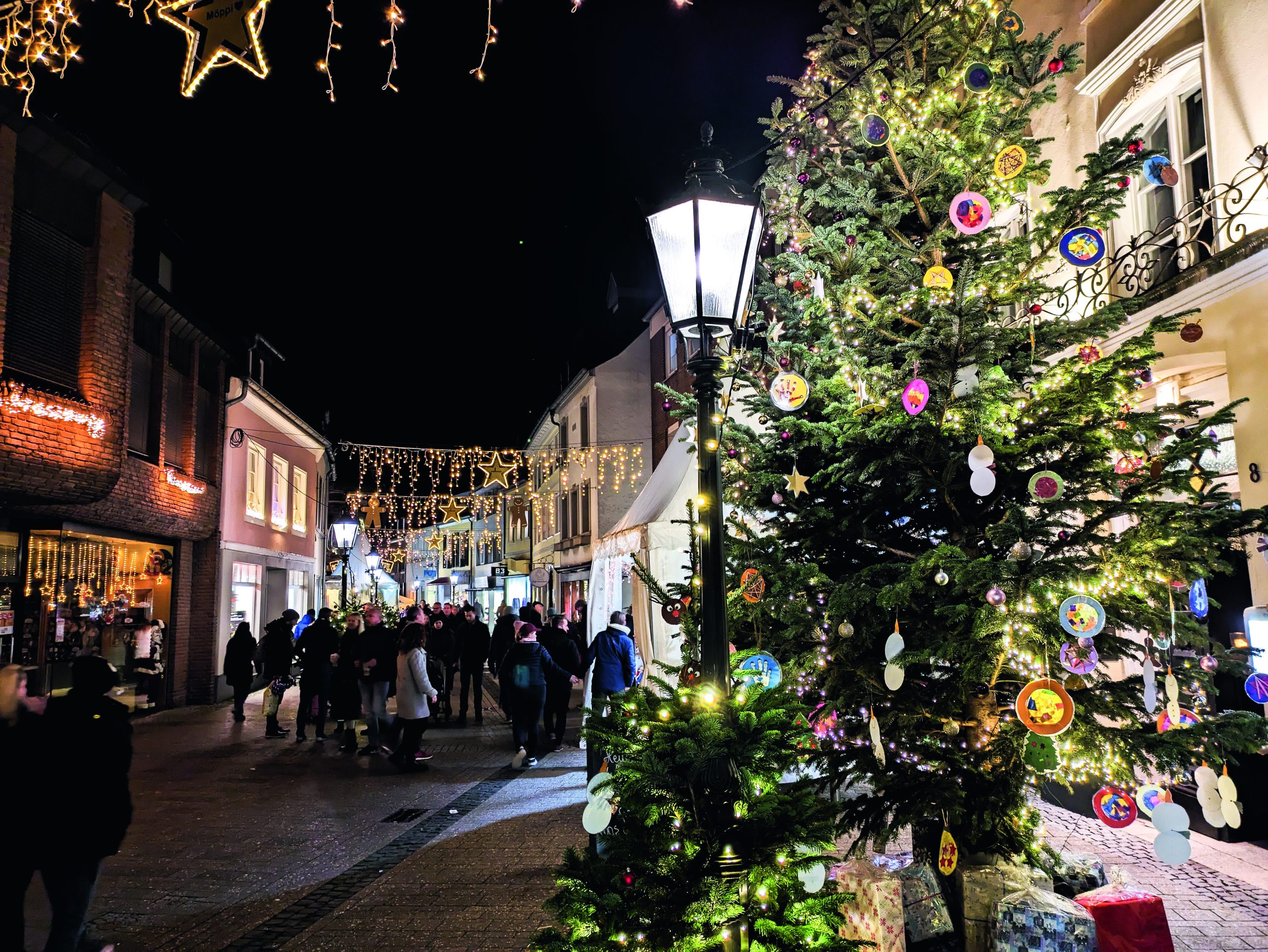 Die Kempener Altstadt verwandelt sich an den vier Adventswochenenden wieder in eine zauberhafte vorweihnachtliche Wunderwelt. Zahlreiche Tannenbäume, liebevoll geschmückt von den Mitgliedern des Werberings, machen die Altstadt zu einem festlichen Winterwunderland. Rustikale Holzhütten am Rathaus, am Bärenbrunnen und an der Judenstraße sowie die beliebten Skigondeln am Buttermarkt laden zum Verweilen ein. Für Fotografie-Liebhaber gibt es viele wunderbare Motive: Die große Krippe hinter dem Martinsdenkmal und der nLichtbogen am Eingang zum Buttermarkt sind perfekte Hintergründe für schöne Selfies. Auch die Selfie-Hütte am Studentenacker soll für festliche Erinnerungen sorgen. Selbstverständlich ziehen auch die leuchtenden Sterne, die in den Platanen über dem Buttermarkt glänzen, wieder viele Blicke auf sich.